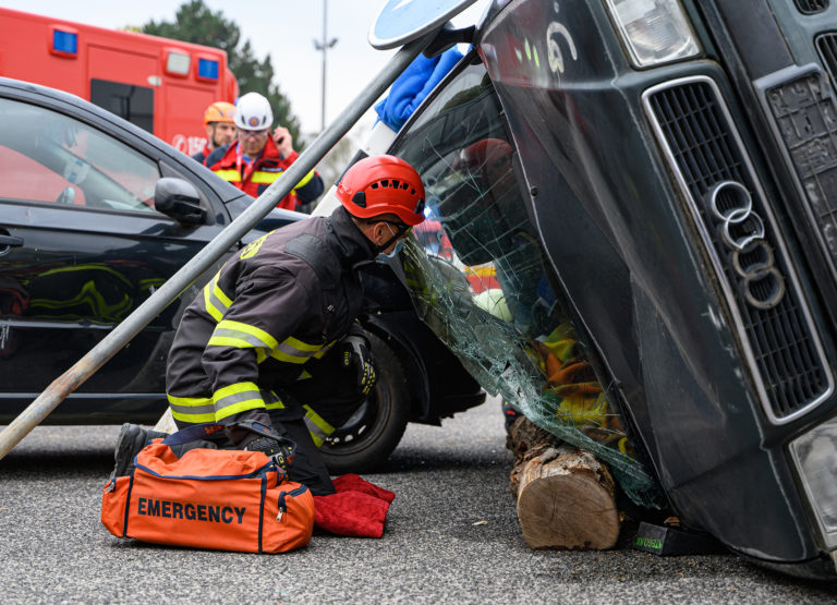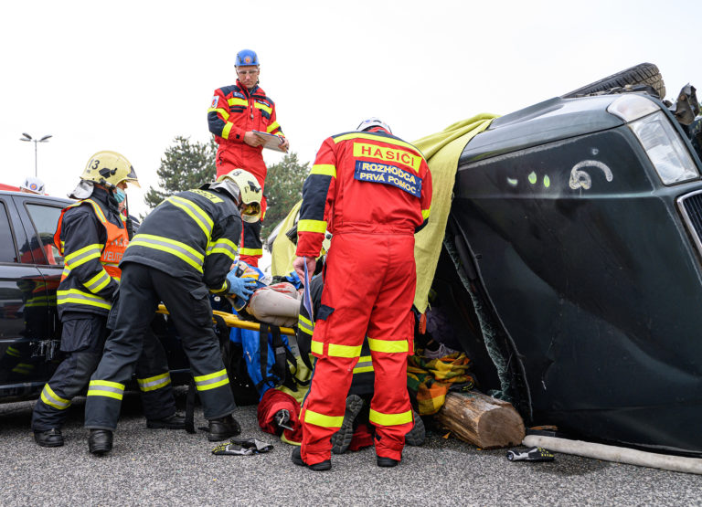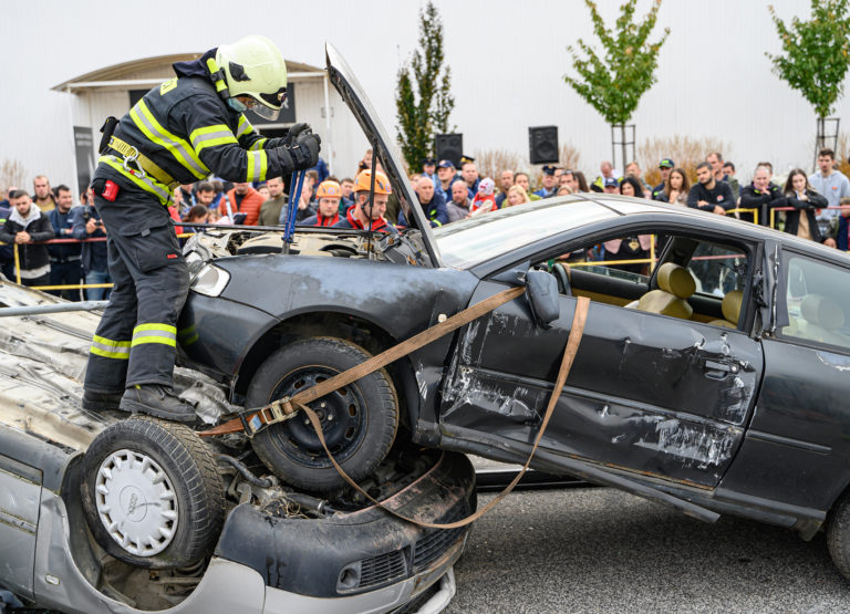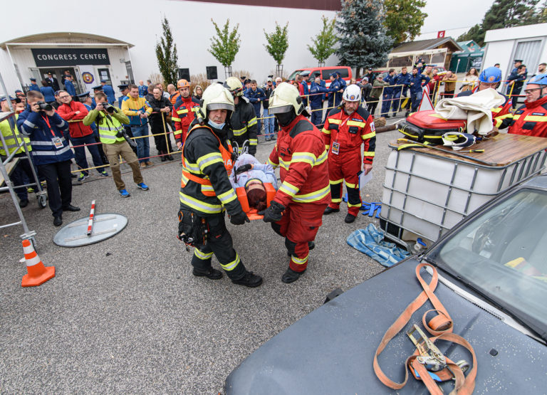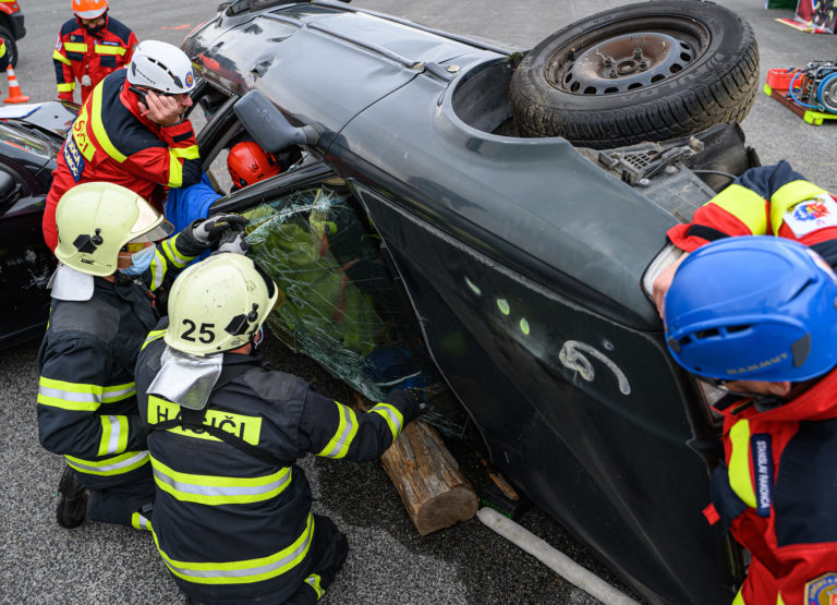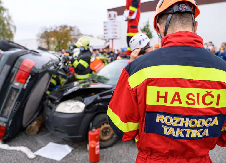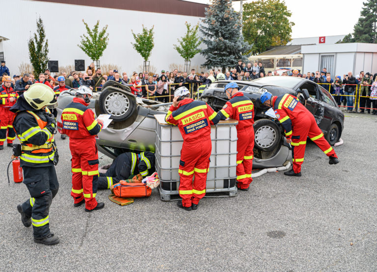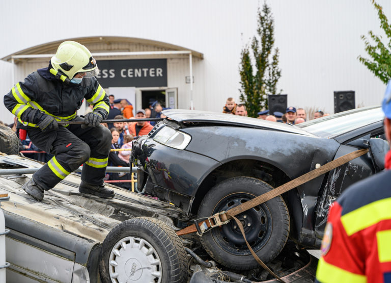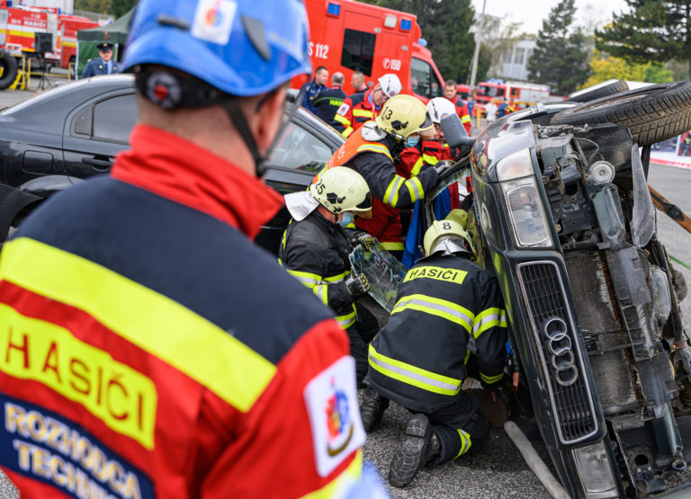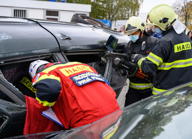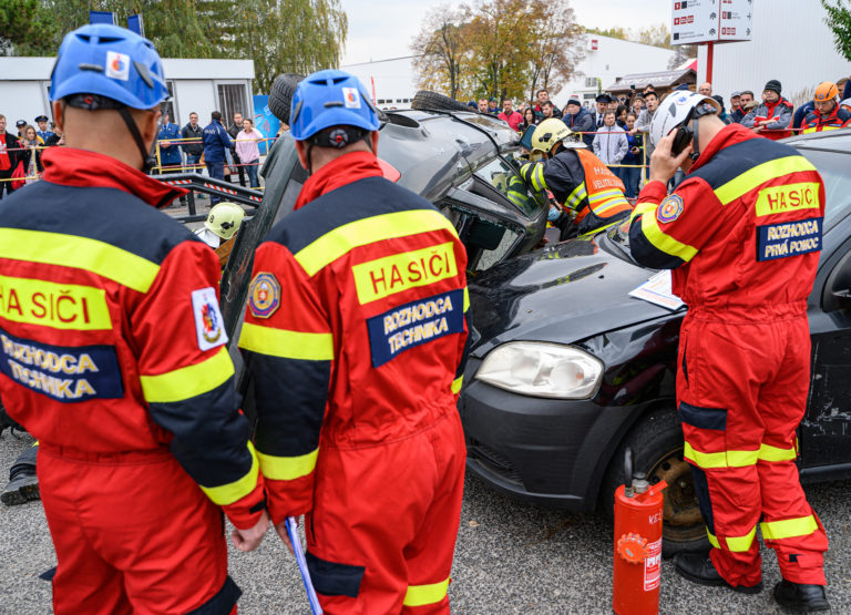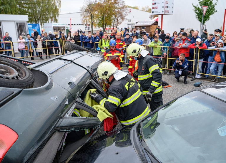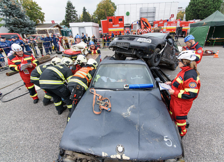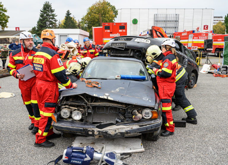 Majstrovstvá SR vo vyslobodzovaní zranených osôb z havarovaných vozidiel, ktoré organizovalo Ministerstvo vnútra SR a Prezídium Hasičského a záchranného zboru v priestoroch výstaviska Agrokomplex Nitra. Nitra, 14. október 2022. Foto: SITA/Martin Havran