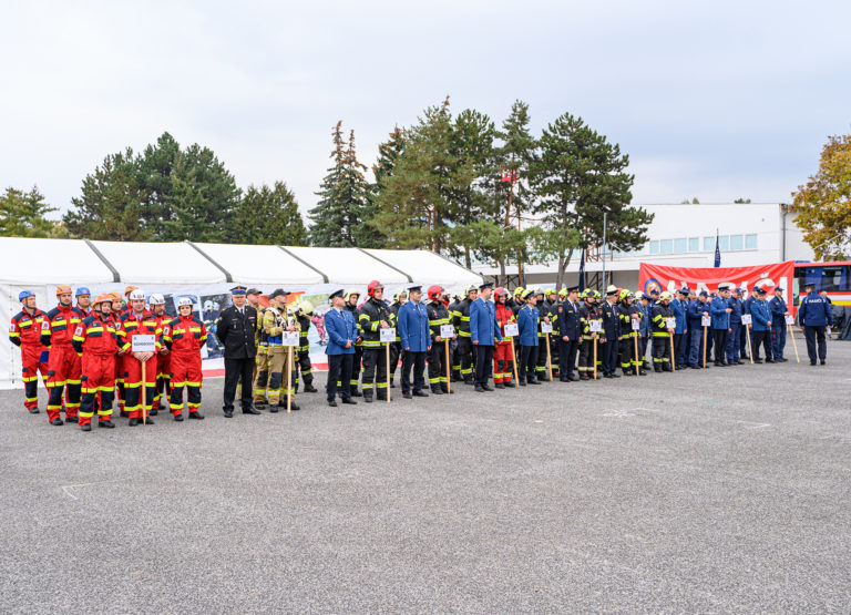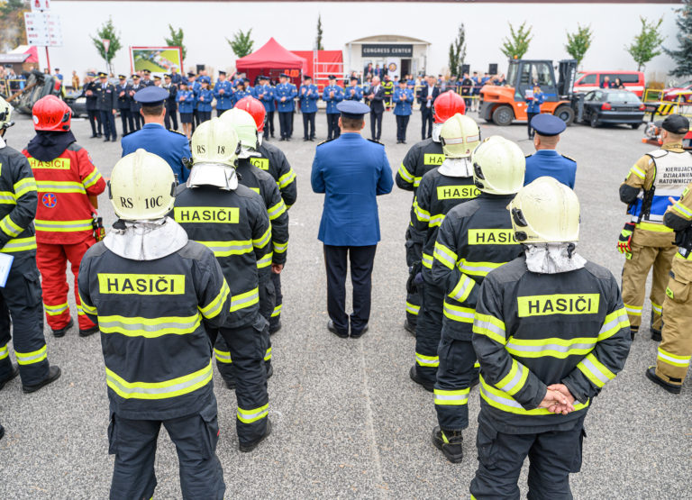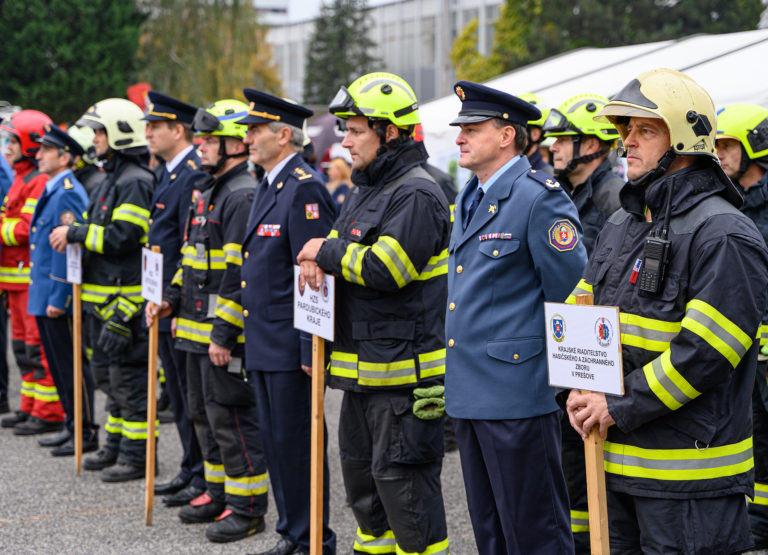 Slávnostné otvorenie majstrovstiev SR vo vyslobodzovaní zranených osôb z havarovaných vozidiel, ktoré organizovalo Ministerstvo vnútra SR a Prezídium Hasičského a záchranného zboru v priestoroch výstaviska Agrokomplex Nitra. Nitra, 14. október 2022. Foto: SITA/Martin Havran