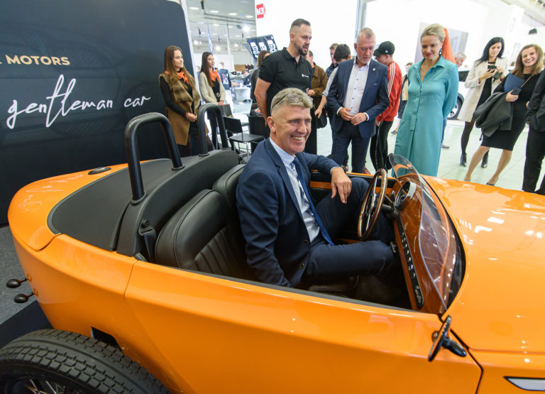 Nový riaditeľ Národného výstaviska agrokomplex Jozef Pavle vo vozidle Patak Rodster od Patak Motors počas otvorenia výstavy Autosalón Autoshow Nitra 2022 na výstavisku Agrokomplex v Nitre. Nitra, 13. október 2022. Foto: SITA/Martin Havran