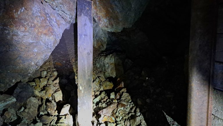 Dutina so závalom v štôlni Strieborná v Poprade-Kvetnici, za ktorým by malo byť ďalšie pokračovanie štôlne. Poprad, 16. november 2023. Foto: SITA/Mária Frisová