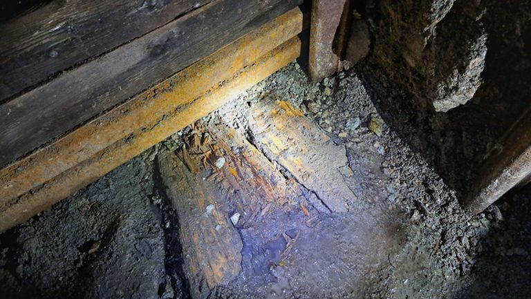 Pôvodná drevená časť podlahy štôlne Strieborná v Poprade-Kvetnici. Poprad, 16. november 2023. Foto: SITA/Mária Frisová
