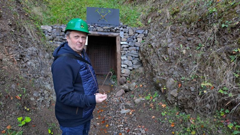 Predseda občianskeho združenia Banícky cech horného Spiša Slavomír Kyseľa v štôlni Strieborná v Poprade-Kvetnici. Poprad, 16. november 2023. Foto: SITA/Mária Frisová