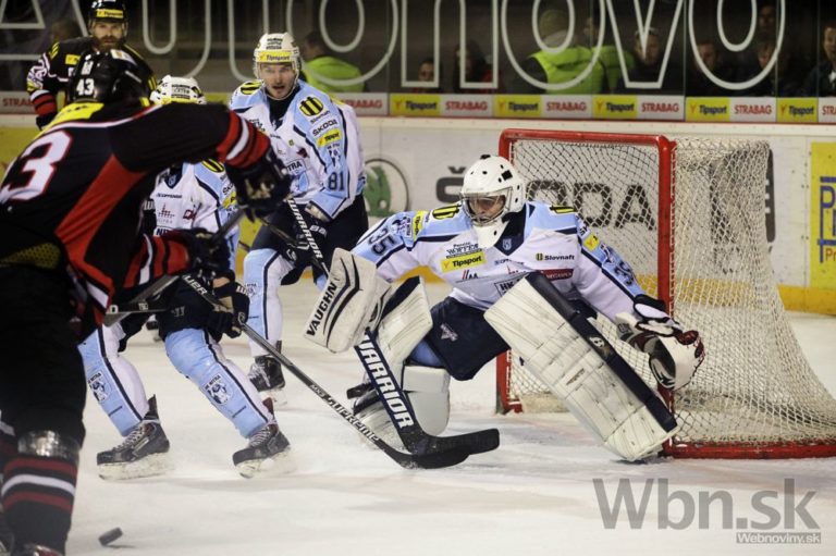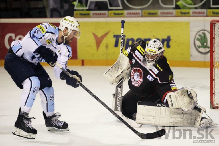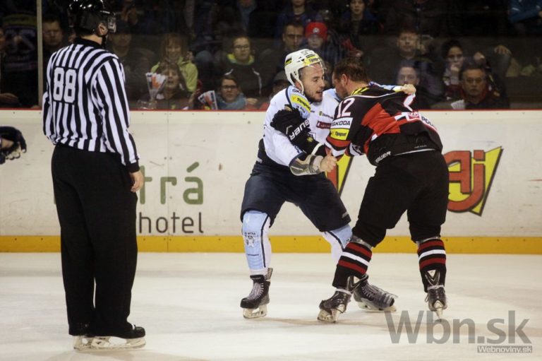 Vlastimil Lakosil (vpravo) z HK Nitra počas šiesteho semifinálového zápasu play-off slovenskej hokejovej Tipsport extraligy 2014/2015 medzi HC´05 Banská Bystrica - HK Nitra. Banská Bystrica, 27. marec 2015. Foto: SITA/Ján Viazanička