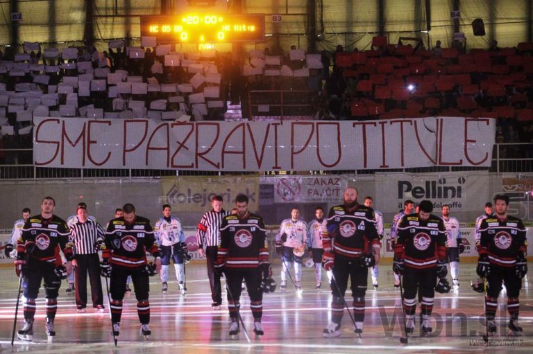 Hráči počas šiesteho semifinálového zápasu play-off slovenskej hokejovej Tipsport extraligy 2014/2015 medzi HC´05 Banská Bystrica - HK Nitra. Banská Bystrica, 27. marec 2015. Foto: SITA/Ján Viazanička