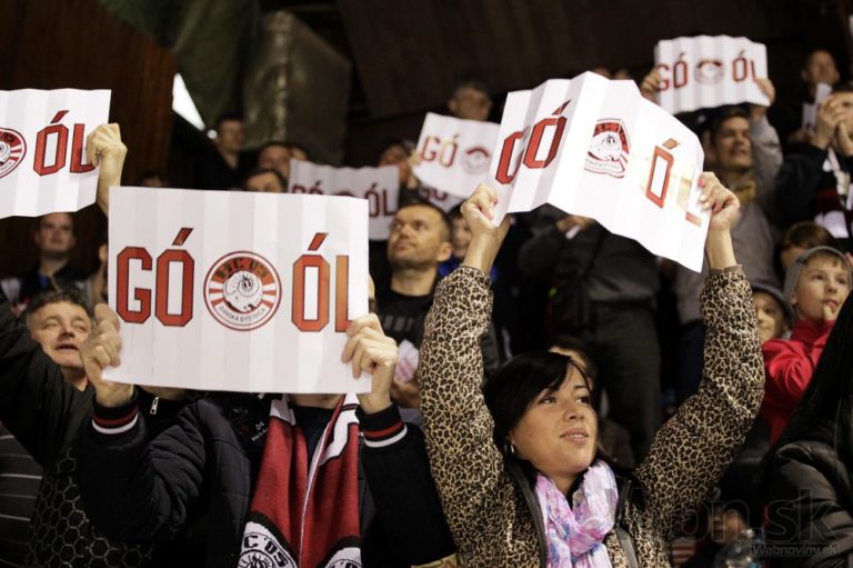 Radosť fanúšikov HC´05 Banská Bystrica po strelení úvodného gólu počas šiesteho semifinálového zápasu play-off slovenskej hokejovej Tipsport extraligy 2014/2015 medzi HC´05 Banská Bystrica - HK Nitra. Banská Bystrica, 27. marec 2015. Foto: SITA/Ján Viazanička