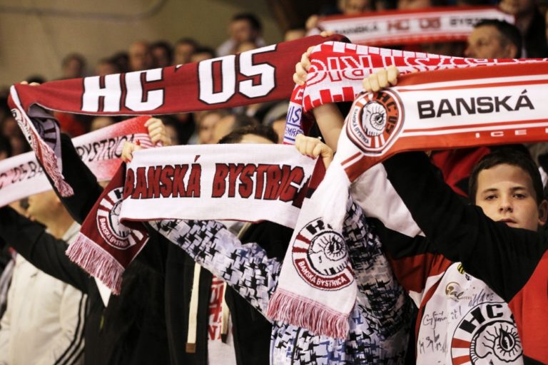 Fanúšikovia HC'05 Banská Bystrica počas 3. zápasu semifinále slovenskej hokejovej Tipsport extraligy 2013/2014 medzi HC'05 Banská Bystrica - HK Nitra. Banská Bystrica, 30. marec 2014. Foto: SITA/Ján Viazanička