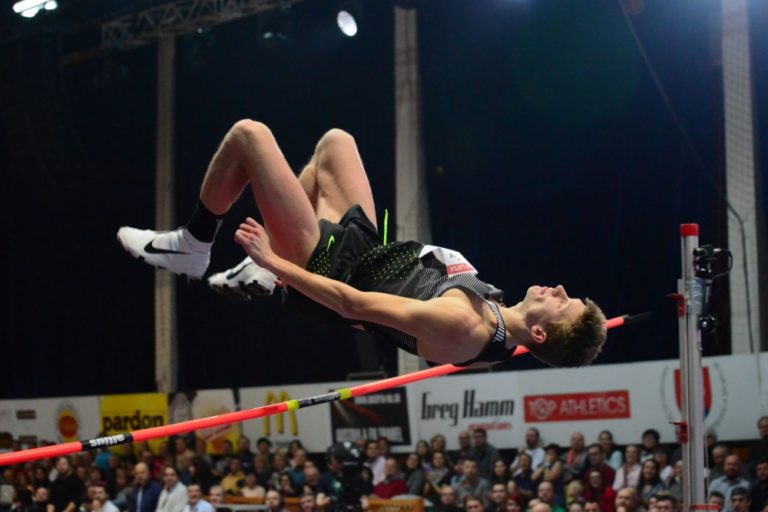 Poľský reprezentant Sylwester Bednarek počas 23. ročníka halového výškarského mítingu Banskobystrická latka 2017. Banská Bystrica, 8. február 2017. Foto: SITA/Jakub Julény