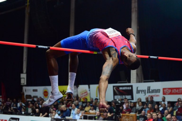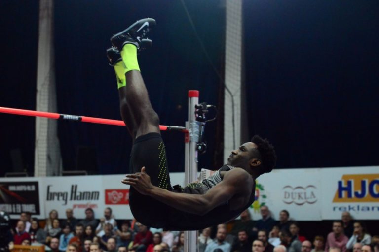 Bahamský reprezentant Donald Thomas počas 23. ročníka halového výškarského mítingu Banskobystrická latka 2017. Banská Bystrica, 8. február 2017. Foto: SITA/Jakub Julény