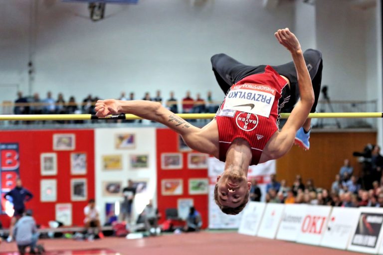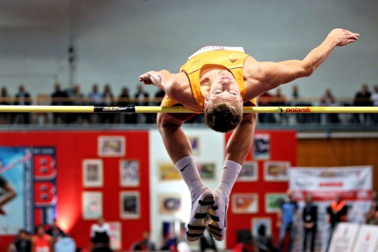 Nemencký výškar Mateusz Przybylko počas 24. ročníka halového mítingu v skoku do výšky Banskobystrická latka (BBL) 2018. Banská Bystrica, 6. február 2018. Foto: SITA/Peter Rusko.