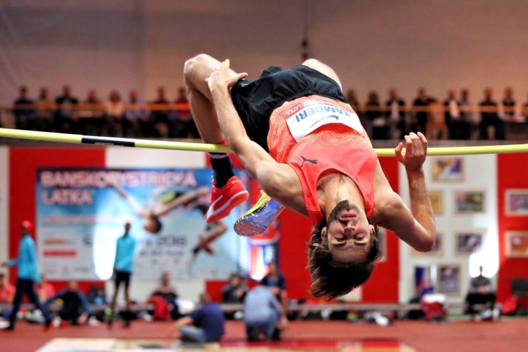 Taliansky výškar Gianmarco Tamberi počas 24. ročníka halového mítingu v skoku do výšky Banskobystrická latka (BBL) 2018. Banská Bystrica, 6. február 2018. Foto: SITA/Peter Rusko.
