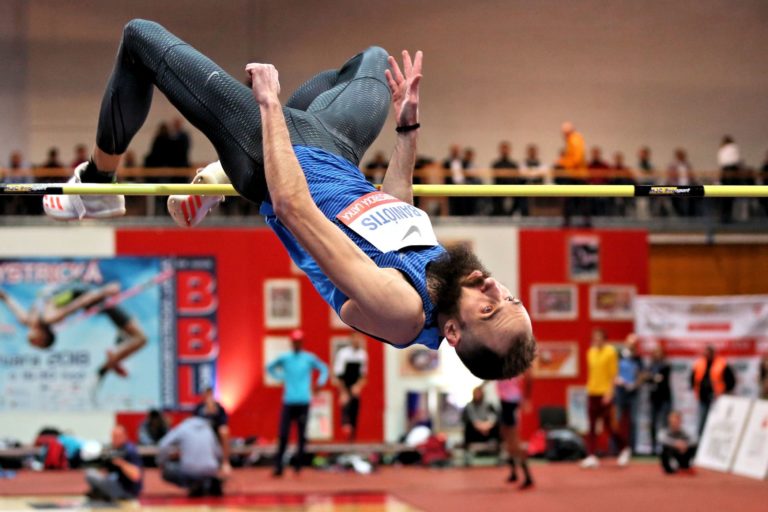 Slovenský výškar Matúš Bubeník počas 24. ročníka halového mítingu v skoku do výšky Banskobystrická latka (BBL) 2018. Banská Bystrica, 6. február 2018. Foto: SITA/Peter Rusko.