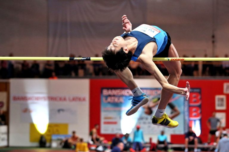 Čínsky výškar Yu Wang počas 24. ročníka halového mítingu v skoku do výšky Banskobystrická latka (BBL) 2018. Banská Bystrica, 6. február 2018. Foto: SITA/Peter Rusko.