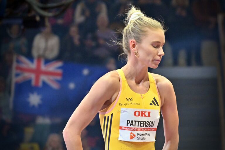 Druhá v celkovom poradí Eleanor Pattersonová z Austrálie počas 31. ročníka halového výškarskeho mítingu Banskobystrická latka 2025. Banská Bystrica, 18. február 2025. Foto: SITA/Jakub Julény