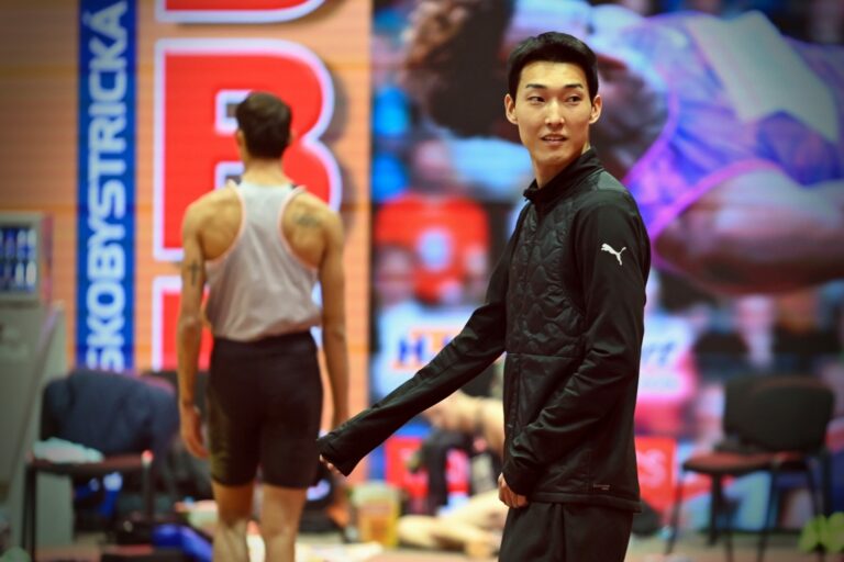 Prvý v celkovom poradí Woo Sang-hyeok z Južnej Kórey počas 31. ročníka výškarského mítingu Banskobystrická latka 2025. Banská Bystrica, 18. február 2025. Foto: SITA/Jakub Julény
