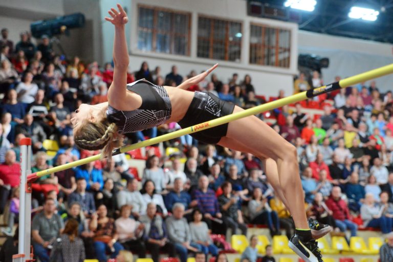 Ukrajinská výškarka Iryna Herashchenková počas 26. ročníka halového mítingu v skoku do výšky s názvom Banskobystrická latka (BBL) 2020. Banská Bystrica, 11. február 2020. Foto: SITA/Jakub Julény