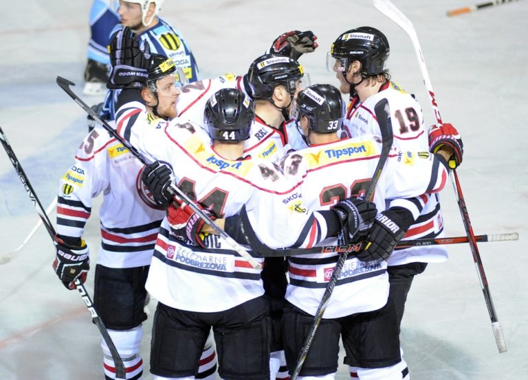 Hráči HC ´05 Banská Bystrica počas 1. zápasu semifinále slovenskej hokejovej Tipsport extraligy 2013/2014 medzi HK Nitra - HC ´05 Banská Bystrica. Nitra, 26. marec 2014. Foto: SITA/Martin Havran