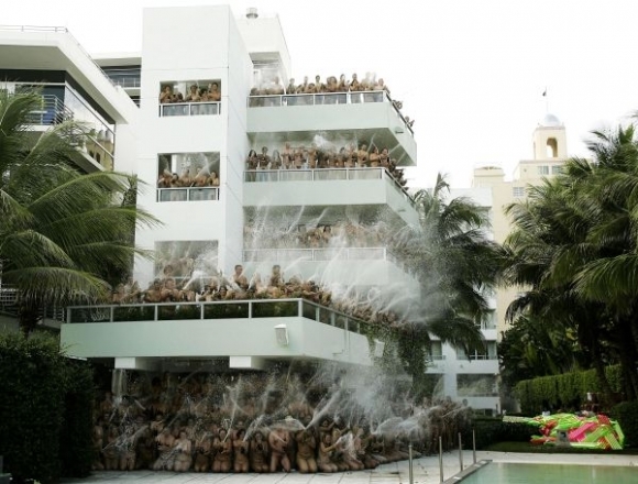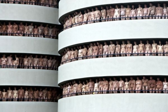 Spencer Tunick fotí pri východe slnka v centre Caracasu vo Venezuele 19. marca 2006. Foto: SITA/AP