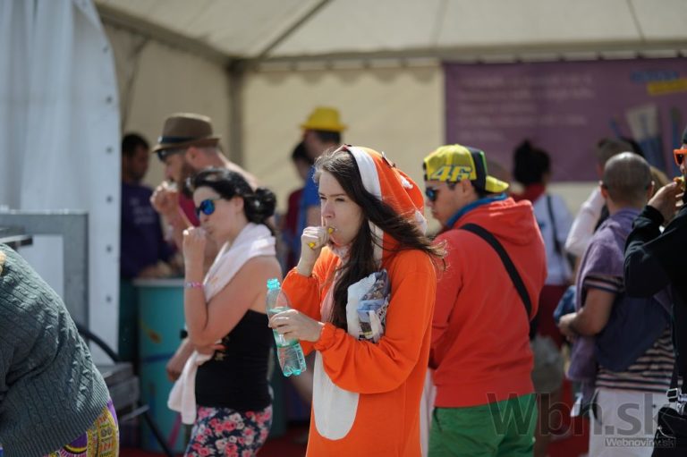 Účastníci letného hudobného festivalu Bažant Pohoda 2015 počas oficiálneho otvorenia na letisku v Trenčíne. Trenčín, 9. júl 2015. Foto: SITA/Robert Tappert