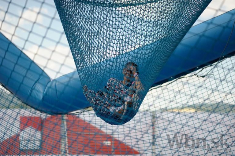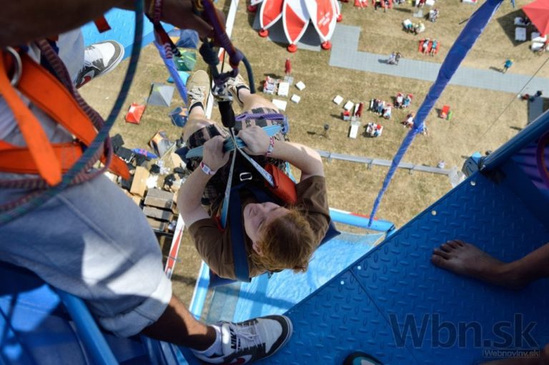 (Účastník festivalu počas adrenalínového zoskoku.) Atmosféra počas druhého dňa 19. ročníka multižánrového festivalu Bažant Pohoda 2015. Trenčín, 10. júl 2015. Foto: SITA/Robert Tappert