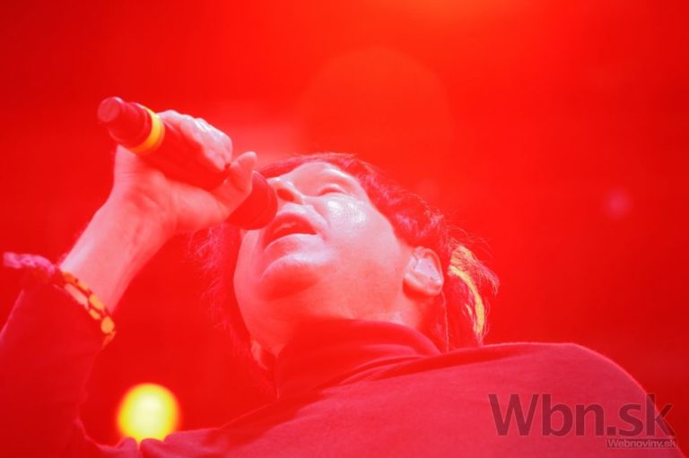 Spevák a líder skupiny Bez ladu a skladu Michal Kaščák (vpravo) počas koncertu v rámci prvého dňa hudobného festivalu Bažant Pohoda 2015 na letisku v Trenčíne. Trenčín, 9. júl 2015. Foto: SITA/Robert Tappert
