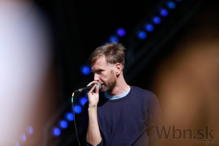Spevák a líder skupiny Bez ladu a skladu Michal Kaščák počas koncertu v rámci prvého dňa hudobného festivalu Bažant Pohoda 2015 na letisku v Trenčíne. Trenčín, 9. júl 2015. Foto: SITA/Robert Tappert