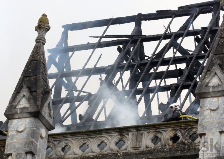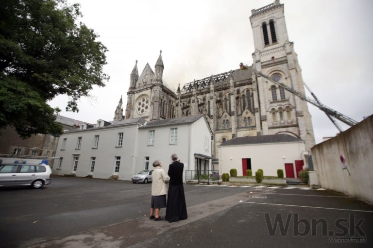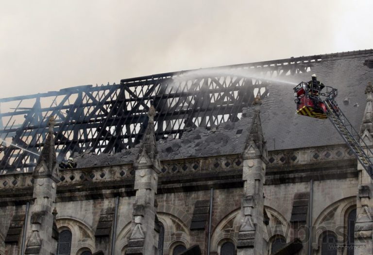 Požiar vypukol krátko po rannej bohoslužbe. Približne štyridsať hasičov s plameňmi bojovalo niekoľko hodín. Foto: SITA/AP
