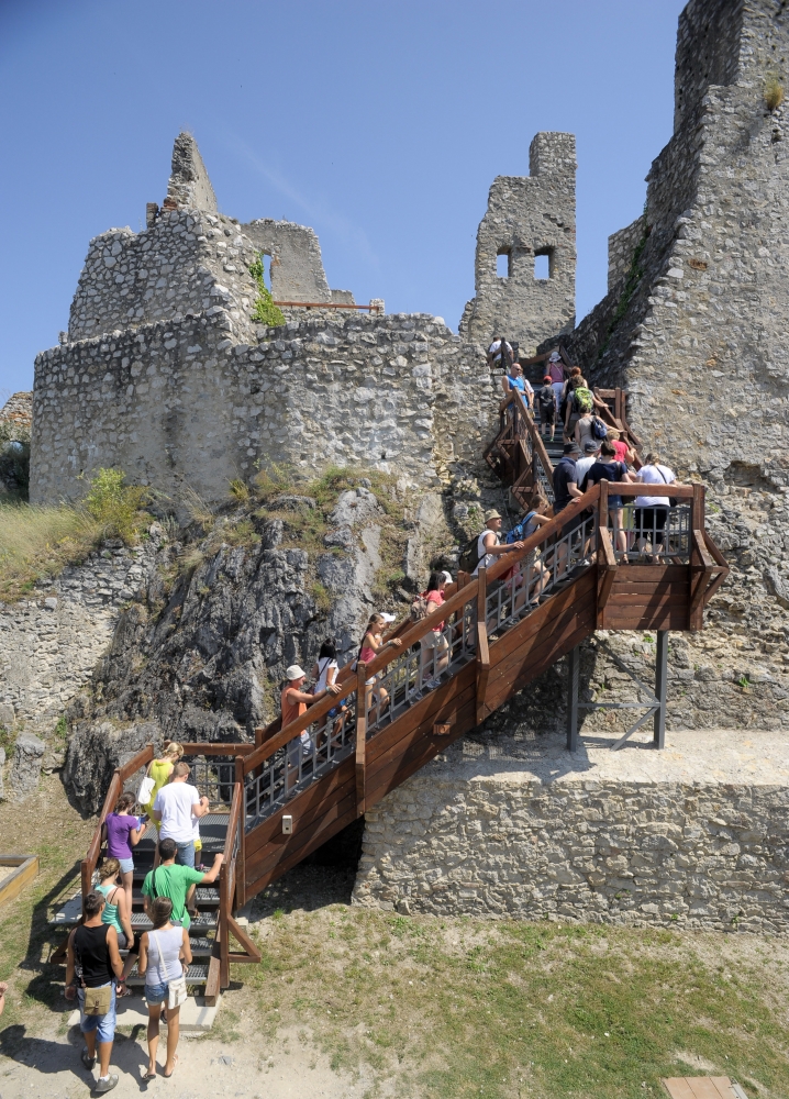 Návštevníci hradu Beckov počas letnej turistickej sezóny 2014. Beckov, 20. júl 2014. Foto: SITA/Martin Medňanský