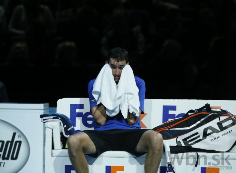 Chorvátsky tenista Marin Čilič počas stredajšieho zápasu na ATP World Tour Finals v Londýne, v ktorom za 76 minút podľahol Čechovi Tomášovi Berdychovi 3:6, 1:6. Londýn, 12. novembra 2014. Foto: SITA/AP