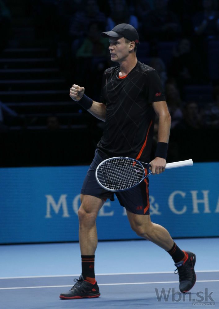 Český tenista Tomáš Berdych zvíťazil počas stredajšieho zápasu na ATP World Tour Finals v Londýne nad Marinom Čiličom za 76 minút jasne 6:3, 6:1. Foto: SITA/AP
