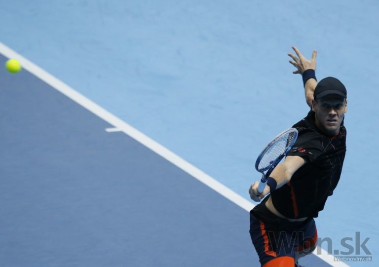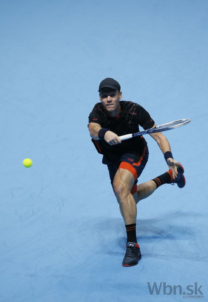 Český tenista Tomáš Berdych počas stredajšieho zápasu na ATP World Tour Finals v Londýne, v ktorom za 76 minút po setoch 6:3 a 6:1 sfúkol Chorváta Marina Čiliča. Londýn, 12. novembra 2014. Foto: SITA/AP