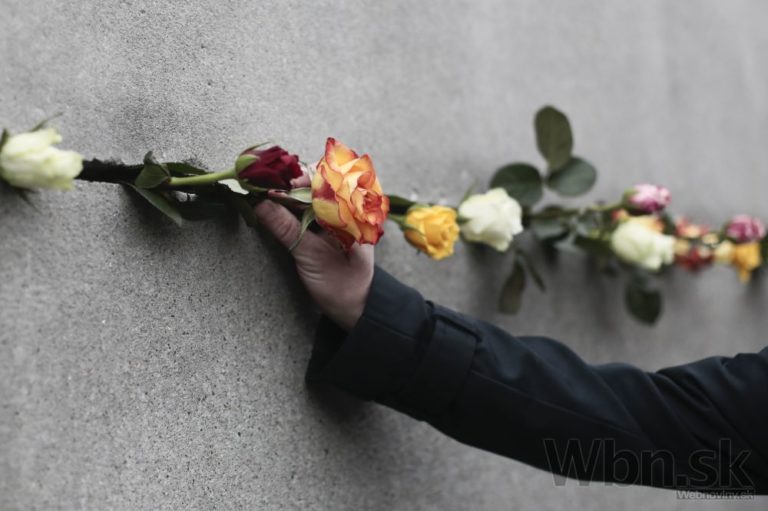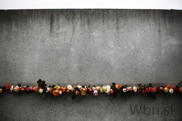 Ľudia vkladali kvety do medzery bývalého Berlínskeho múru pri príležitosti osláv jeho pádu, Nemecko, 9. Nov., 2014. Foto: SITA/AP