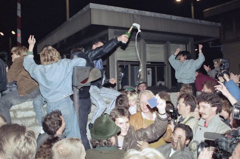 Fotografia zobrazuje Berlínčanov tešiacich sa z otvorenia hraníc, 10. Nov., 1989. Foto: SITA/AP