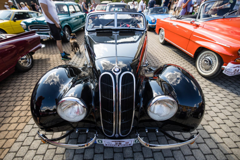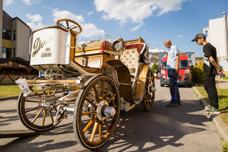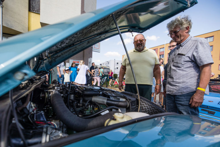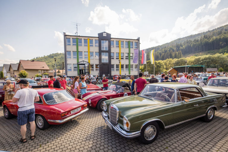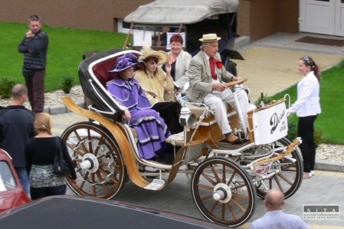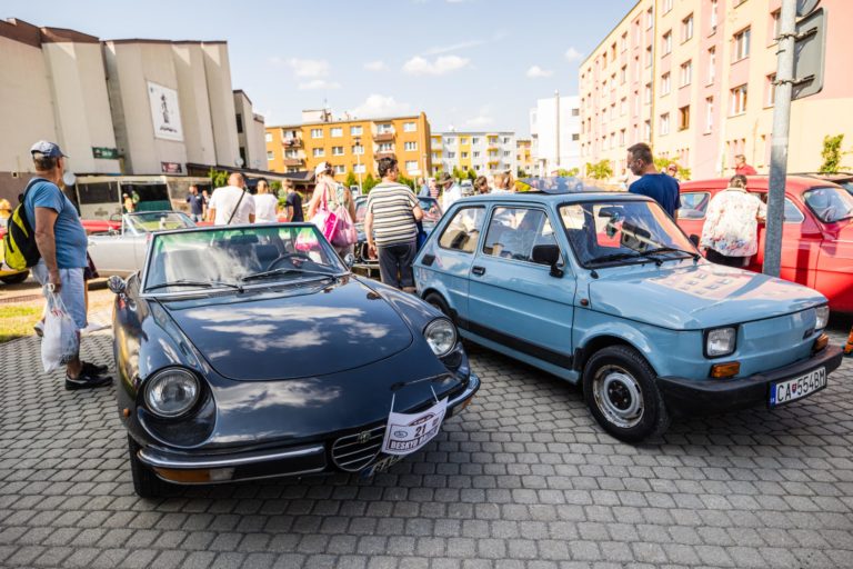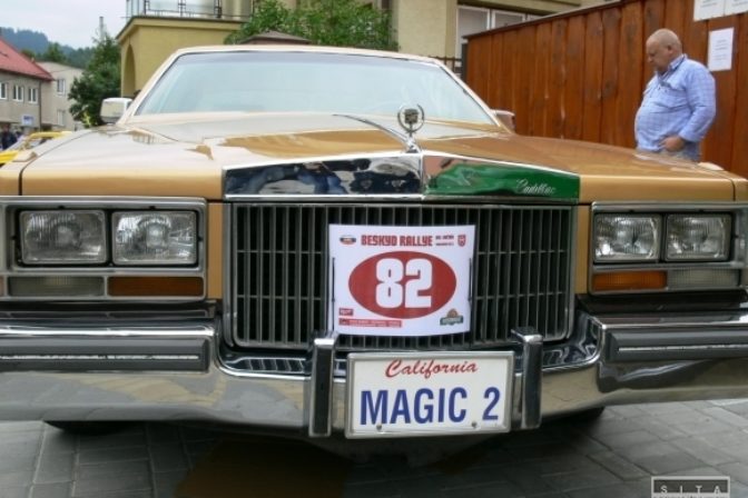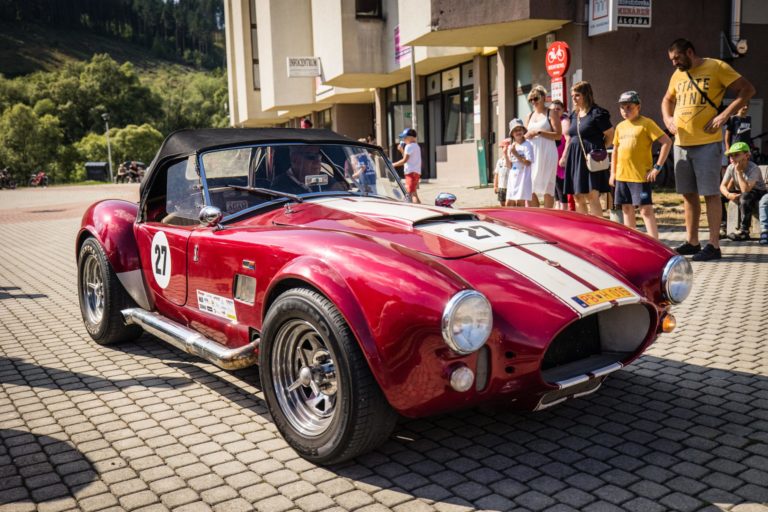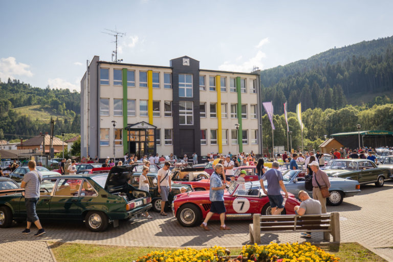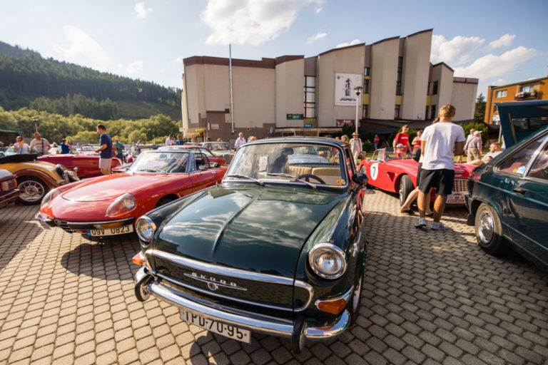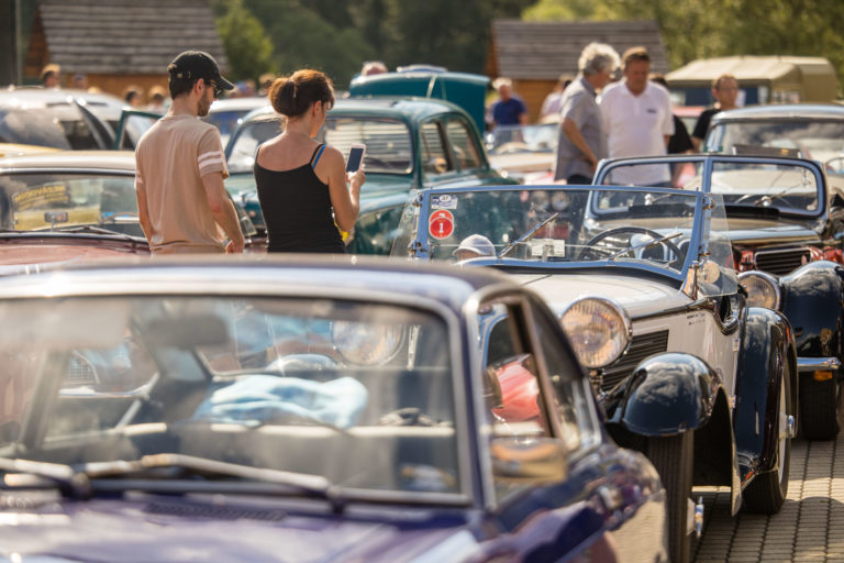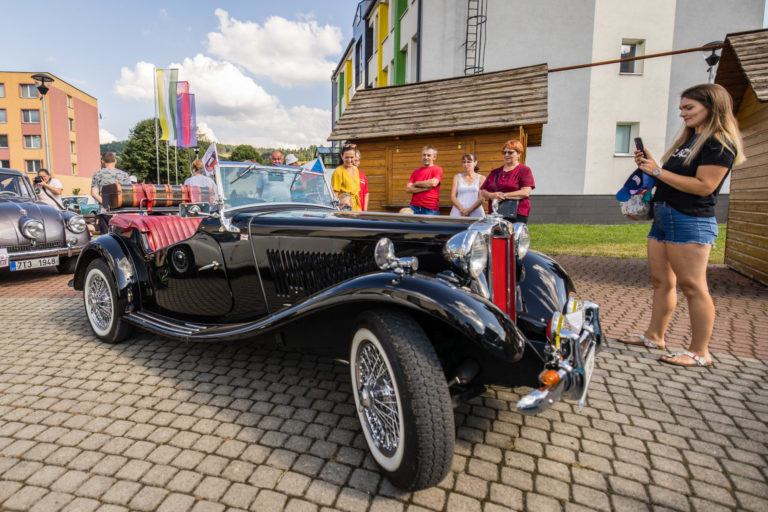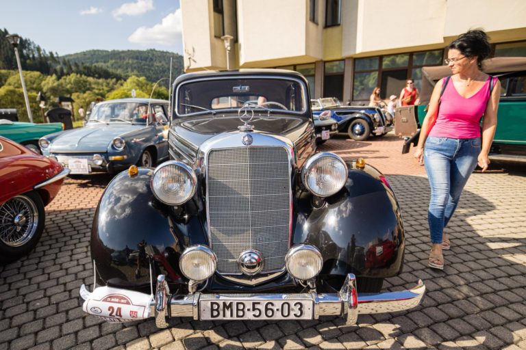 Účastníci počas 25. ročníka Beskyd Rallye - spanilej jazdy historických vozidiel Beskydskou krajinou v Krásne nad Kysucou. Krásno nad Kysucou, 28. júl 2022. Foto: SITA/Jana Birošová.