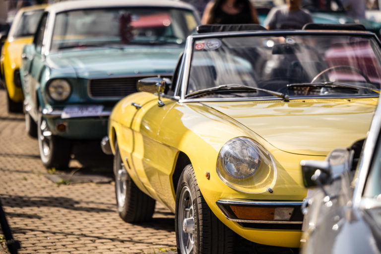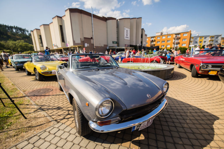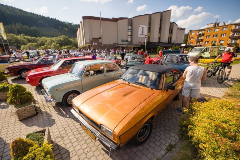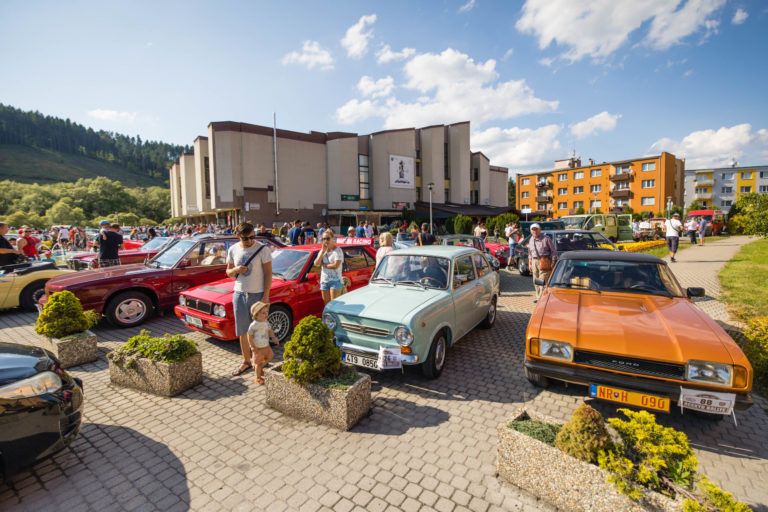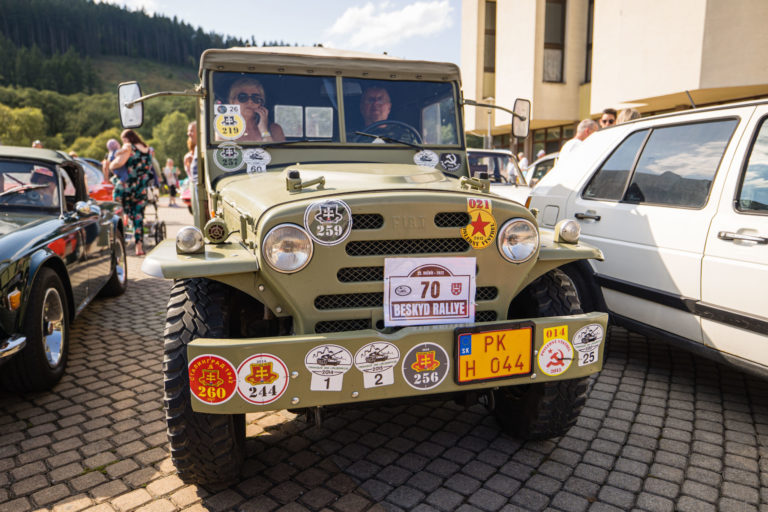 Historické vozidlá počas 25. ročníka Beskyd Rallye - spanilej jazdy historických vozidiel Beskydskou krajinou v Krásne nad Kysucou. Krásno nad Kysucou, 28. júl 2022. Foto: SITA/Jana Birošová.