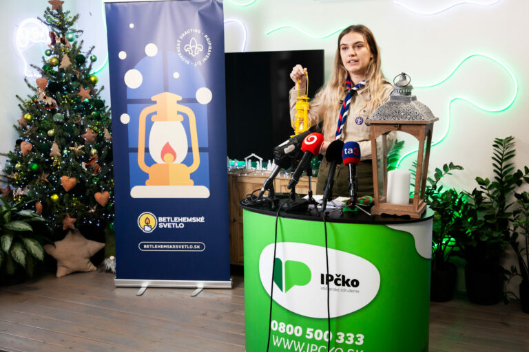 Vianočný plán pomoci IPčko 2024 počas tlačovej konferencie v priestoroch centrály IPčka v Bratislave pri príležitosti predstavenia Vianočného plánu pomoci a ohlásenia špeciálnej spolupráce so Slovenským skautingom a s Betlehemským svetlom. Bratislava, 19. december 2024. Foto: SITA/Tomáš Bokor
