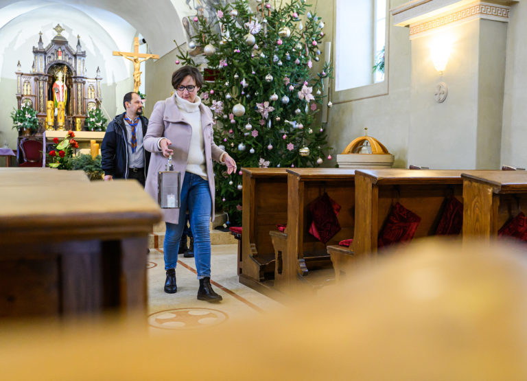 Betlehemské svetlo v Kostole sv. Urbana v Nitre, ktoré prinesli zoborskí skauti. Nitra, 24. december 2023. Foto: archívne, SITA/Martin Havran