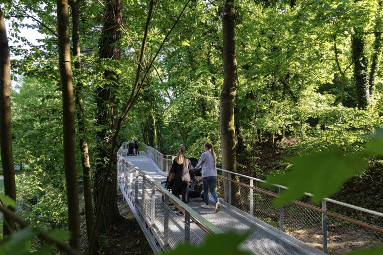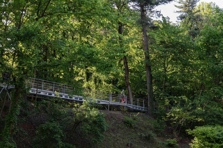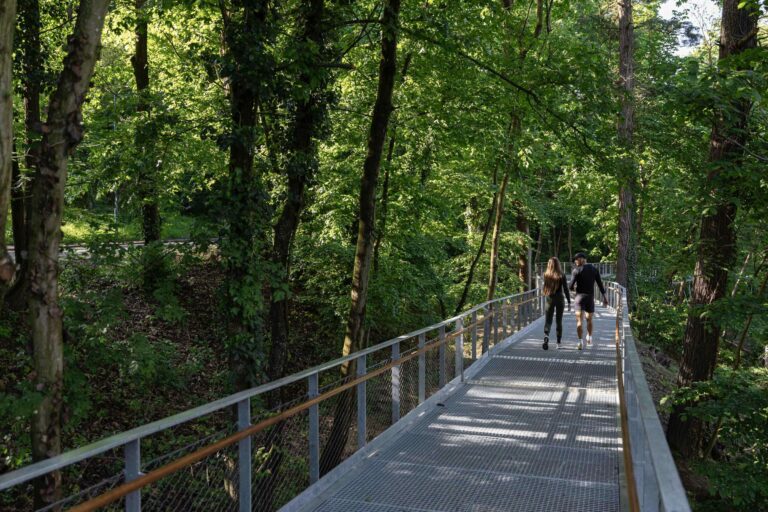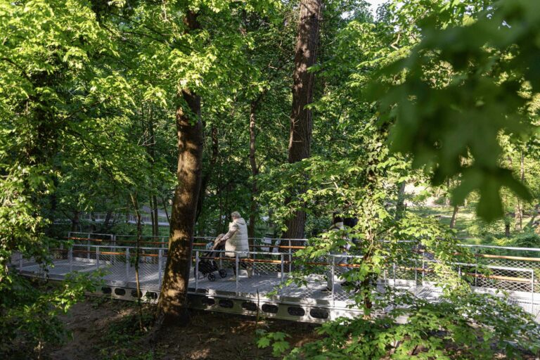 Nová bezbariérová lávka na Partizánskej lúke v mestskej časti Bratislava - Nové mesto, ktorá je týmto prístupnejšia pre všetkých návštevníkov lesoparku. Bratislava, 26. apríl 2025. Foto: SITA/Mestské lesy v Bratislave