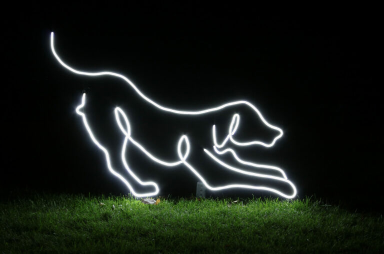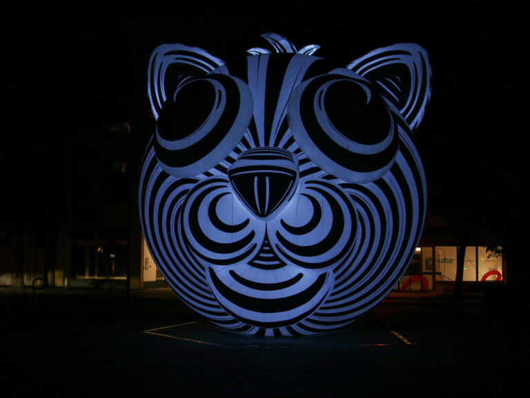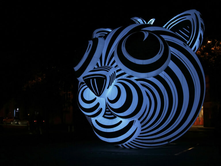 Svetelný objekt Big CAT od Matúša Maťátka počas festivalu súčasného umenia Biela noc 2025. Bratislava, 3. október 2025. Foto: SITA/Andrea Mezeiová
