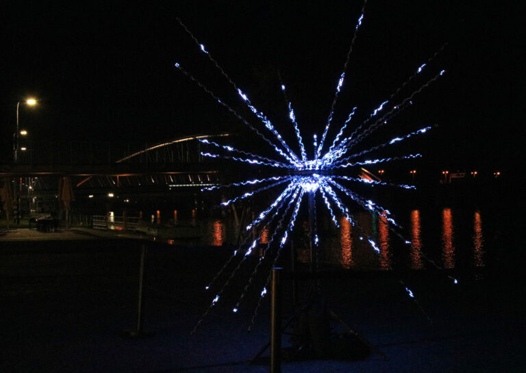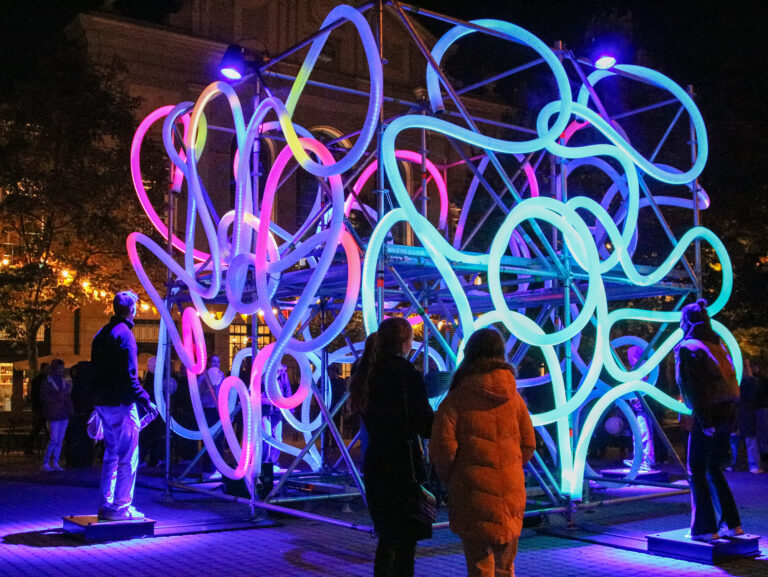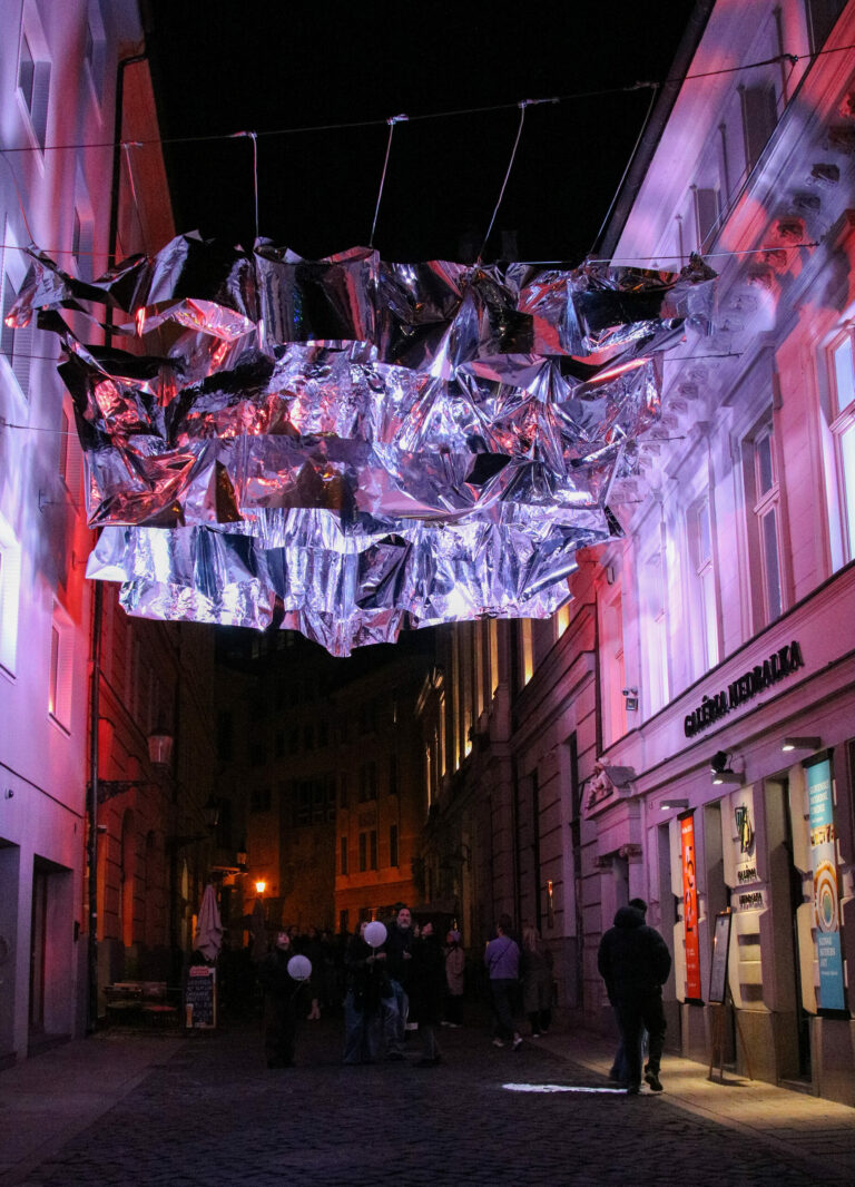 Svetelná inštalácia Urchin od umelcov Dániela Besnyőa & Zoltána Czingáliho počas festivalu súčasného umenia Biela noc 2025. Bratislava, 3. október 2025. Foto: SITA/Andrea Mezeiová