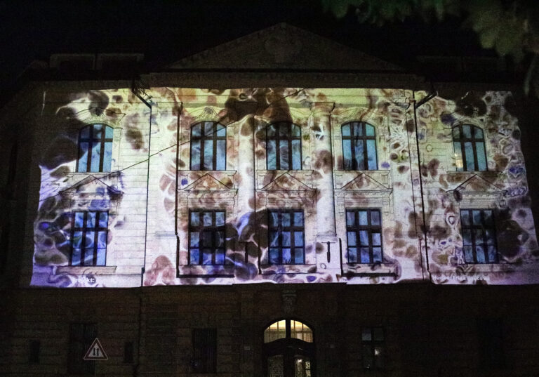 Mapping Fasáda 03., vytvorený študentmi Vysokej školy múzických umení (VŠMU) počas festivalu súčasného umenia Biela noc 2025. Bratislava, 3. október 2025. Foto: SITA/Andrea Mezeiová
