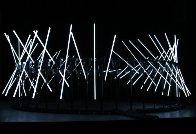 Kinetická svetelná inštalácia Flux od Collectif Scale v spolupráci so spoločnosťou Západoslovenská energetika (ZSE) počas festivalu súčasného umenia Biela noc 2025. Bratislava, 3. október 2025. Foto: SITA/Andrea Mezeiová