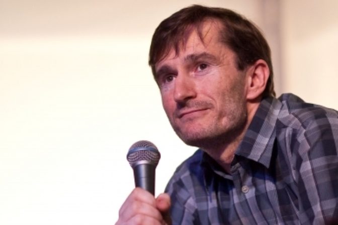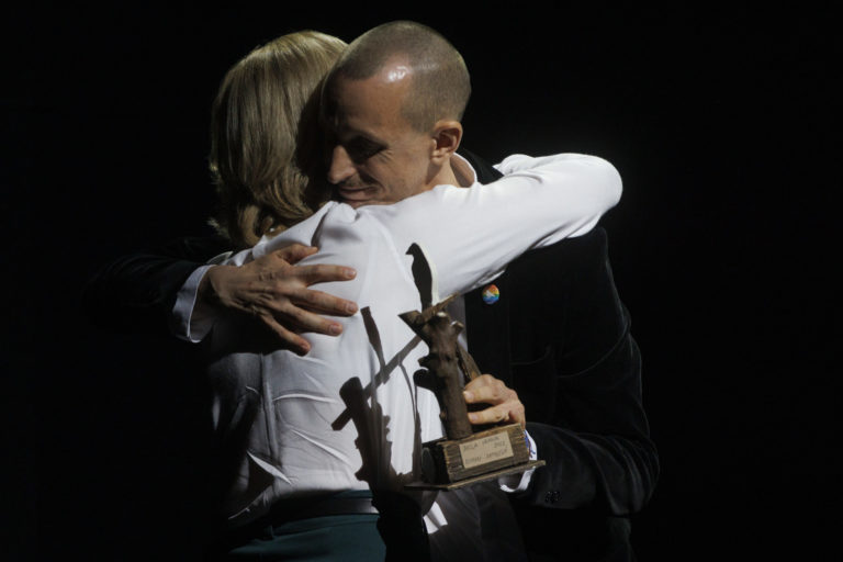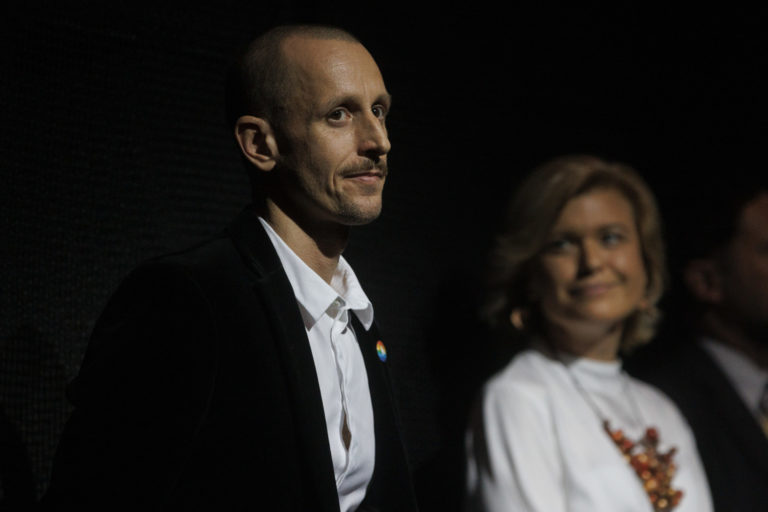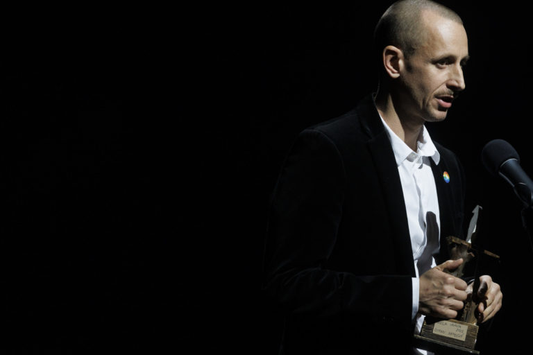 Majiteľ podniku Tepláreň a laureát ceny za ľudskú odvahu, otvorenosť a za dlhodobé vytváranie bezpečného slobodného priestoru pre LGBTI+ komunitu Roman Samotný počas slávnostného udeľovania ocenení Biela vrana 2022. Bratislava, 17. november 2022. Foto: SITA/Branislav Bibel.