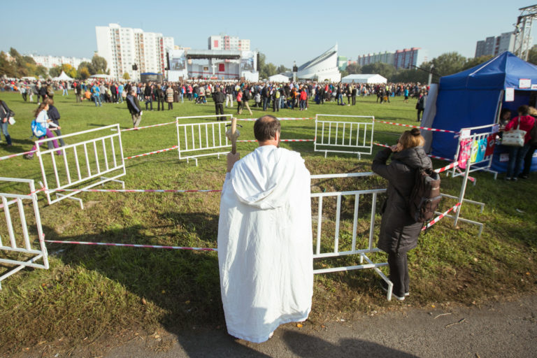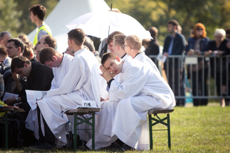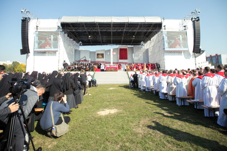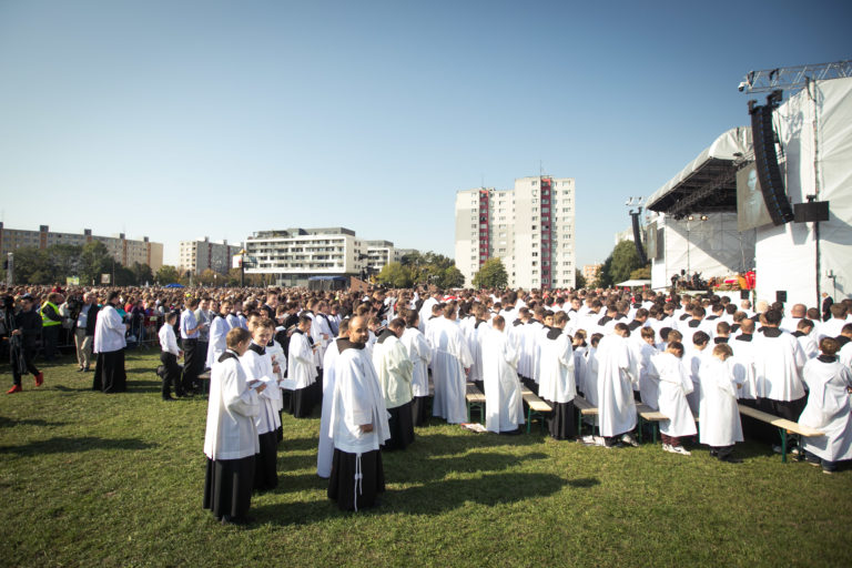 Atmosféra pred začiatkom pontifikálnej svätej omše blahorečenia slovenského saleziána kňaza Titusa Zemana. Bratislava, 30. september 2017. Foto: SITA/Diana Černáková
