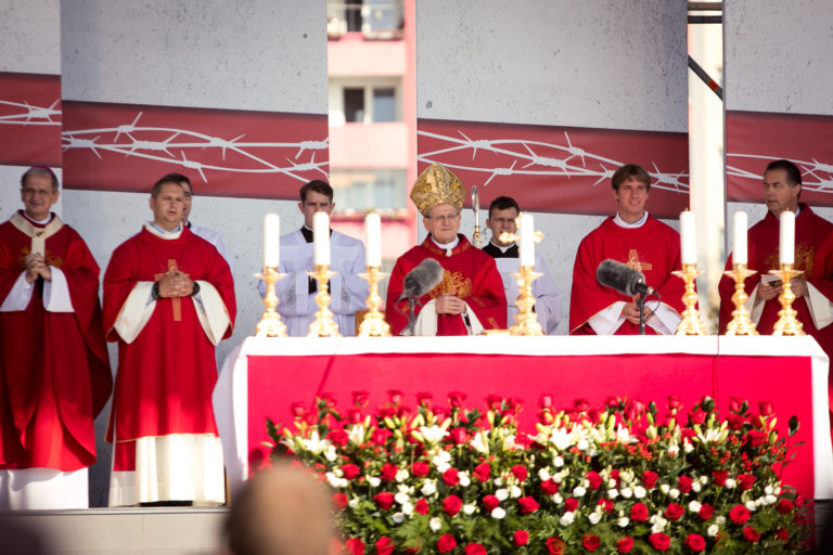 Atmosféra počas začiatku pontifikálnej svätej omše blahorečenia slovenského saleziána kňaza Titusa Zemana. Bratislava, 30. september 2017. Foto: SITA/Diana Černáková