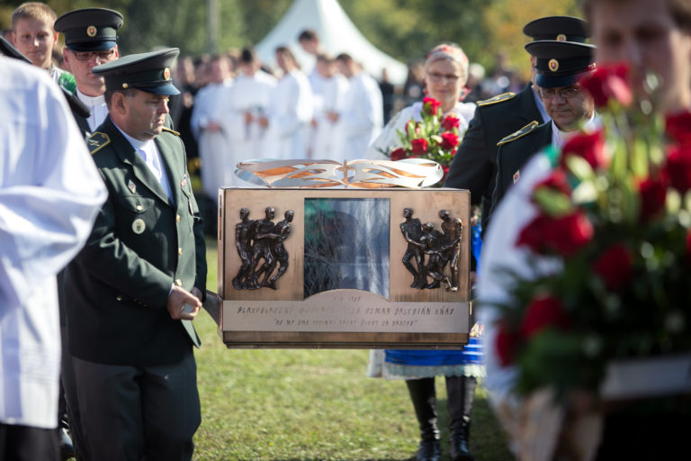 Účastníci počas prinášania relikvií v rámci pontifikálnej svätej omše blahorečenia slovenského saleziána kňaza Titusa Zemana. Bratislava, 30. september 2017. Foto: SITA/Diana Černáková