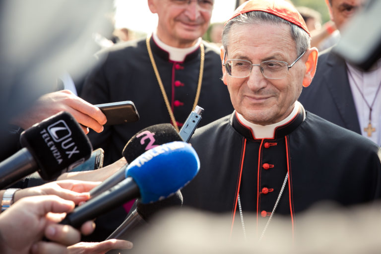 Legát Svätého otca Františka, kardinál Angelo Amato, prefekt Kongregácie pre kauzy svätých počas TB po pontifikálnej svätej omši blahorečenia slovenského saleziána kňaza Titusa Zemana. Bratislava, 30. september 2017. Foto: SITA/Diana Černáková