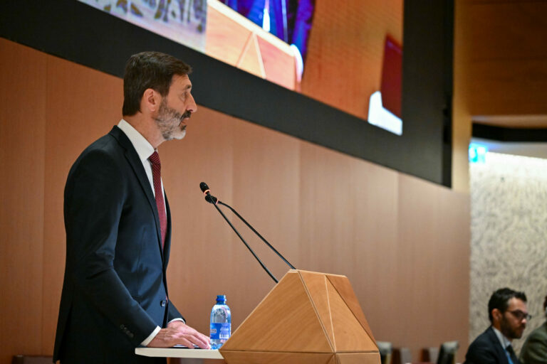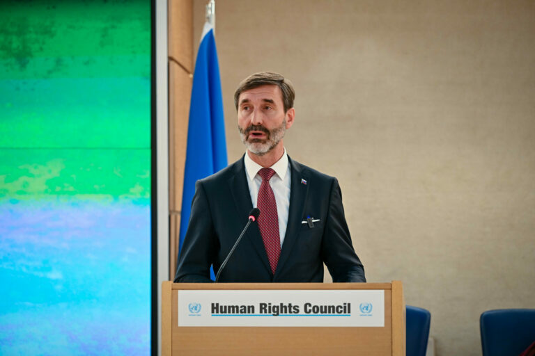 Minister zahraničných vecí a európskych záležitostí Slovenskej republiky Juraj Blanár počas vystúpenia na 58. zasadnutí Rady OSN pre ľudské práva v Ženeve v rámci návštevy ministra vo Švajčiarsku. Ženeva, Švajčiarsko, 25. február 2025. Foto: SITA/MZV