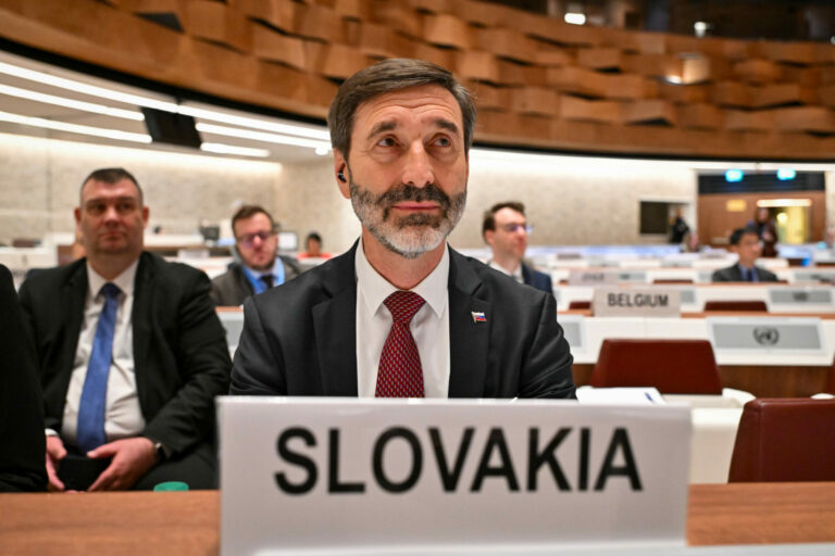 Minister zahraničných vecí a európskych záležitostí Slovenskej republiky Juraj Blanár (v popredí) počas 58. zasadnutia Rady OSN pre ľudské práva v Ženeve v rámci návštevy ministra vo Švajčiarsku. Ženeva, Švajčiarsko, 25. február 2025. Foto: SITA/MZV