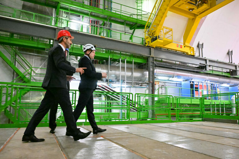 Minister zahraničných vecí a európskych záležitostí SR Juraj Blanár (vľavo) počas prehliadky európskeho laboratória pre časticovú fyziku CERN v rámci pracovnej návštevy ministra vo Švajčiarsku. Ženeva, Švajčiarsko, 25. február 2025. Foto: SITA/MZV