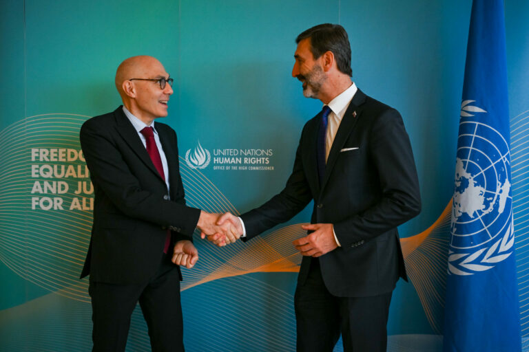 Sprava: Minister zahraničných vecí a európskych záležitostí SR Juraj Blanár a komisár OSN pre ľudské práva Volker Türk počas pracovnej návštevy ministra vo Švajčiarsku. Ženeva, Švajčiarsko, 26. február 2025. Foto: SITA/MZV